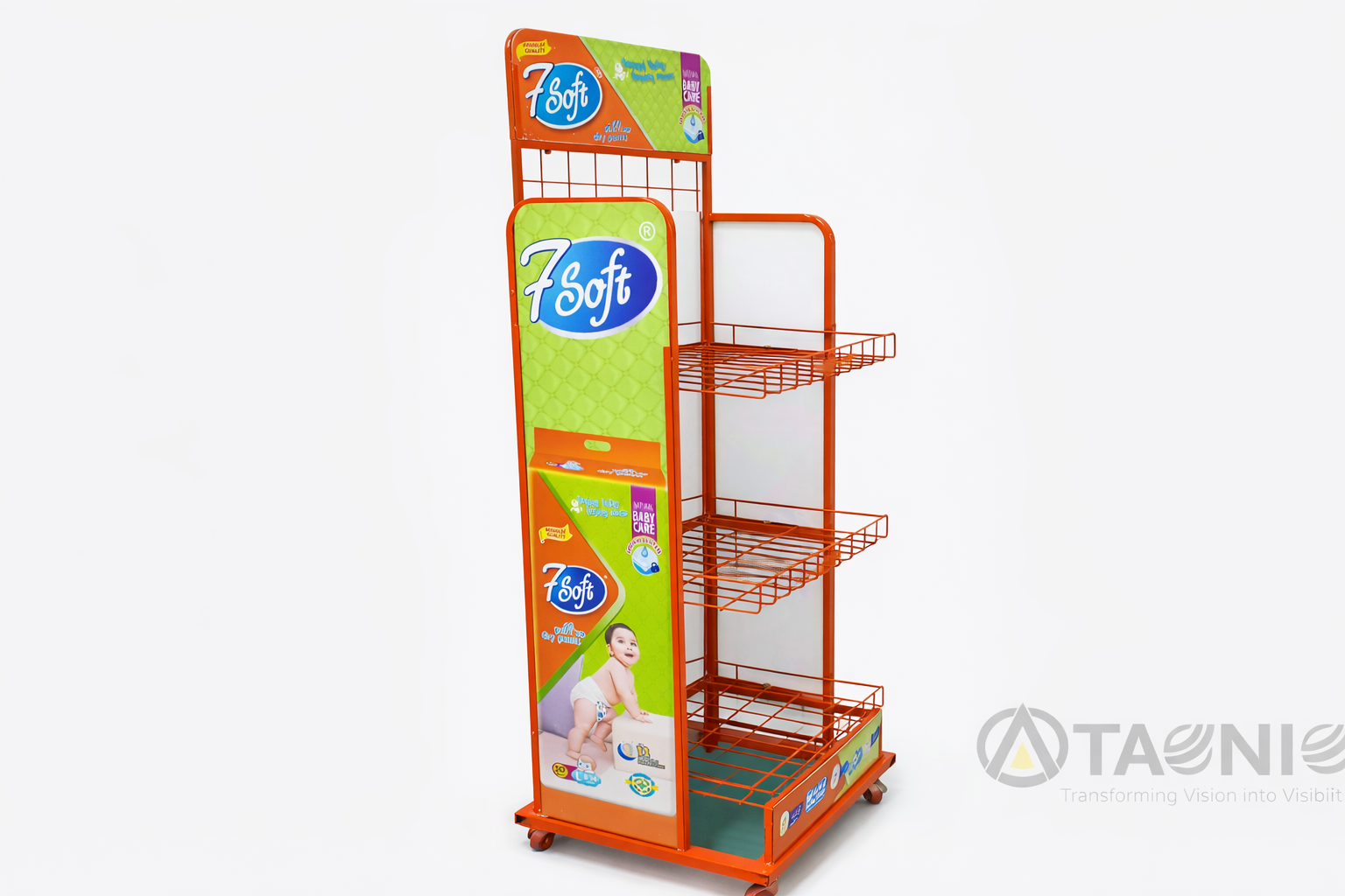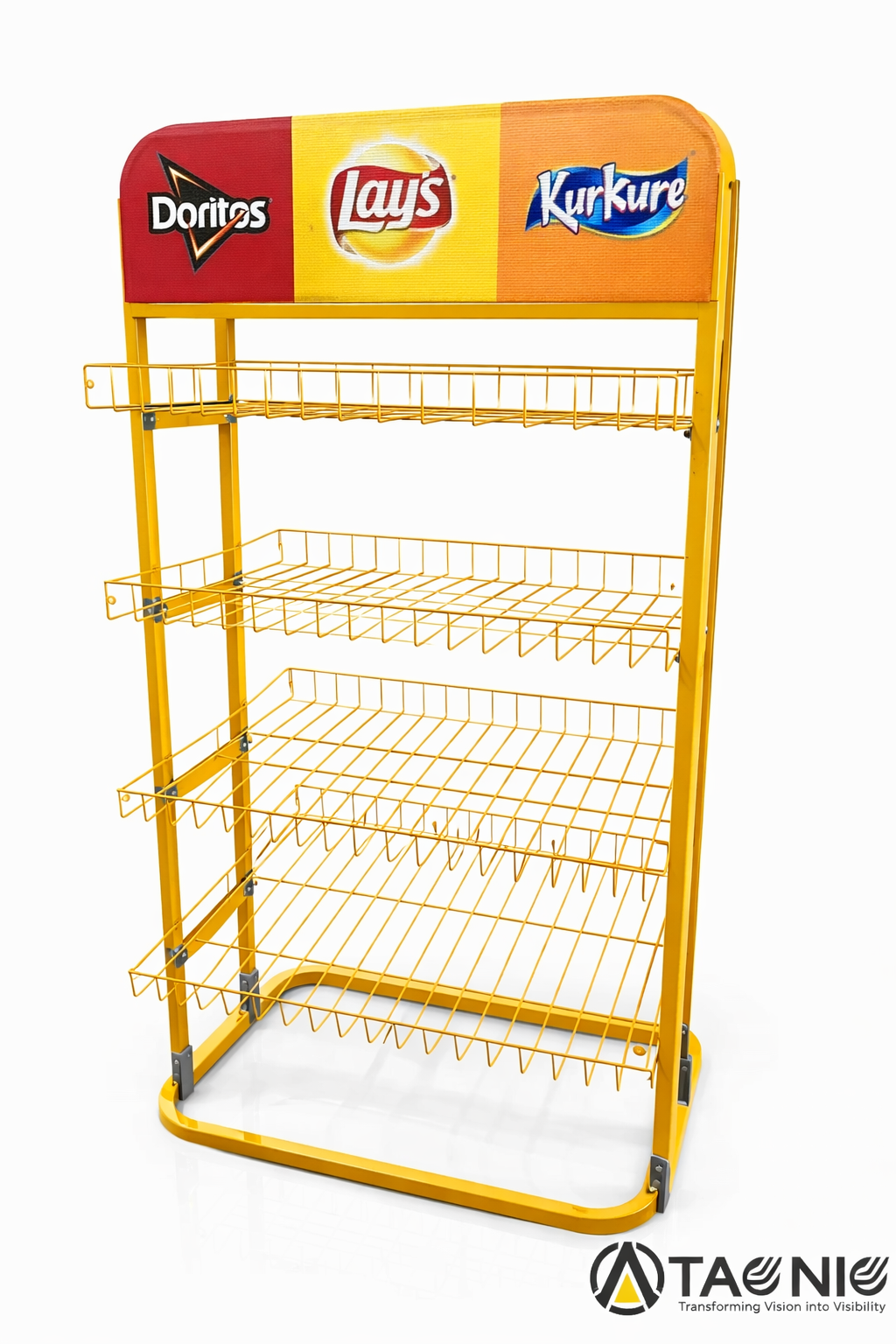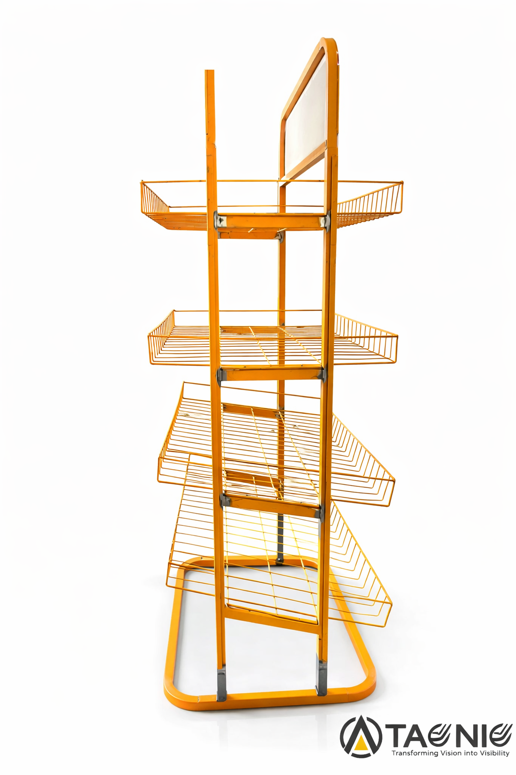 Designed to optimize space and improve product visibility, Taqniq metal racks can be fully customized to match your load requirements, store layout, and branding needs.