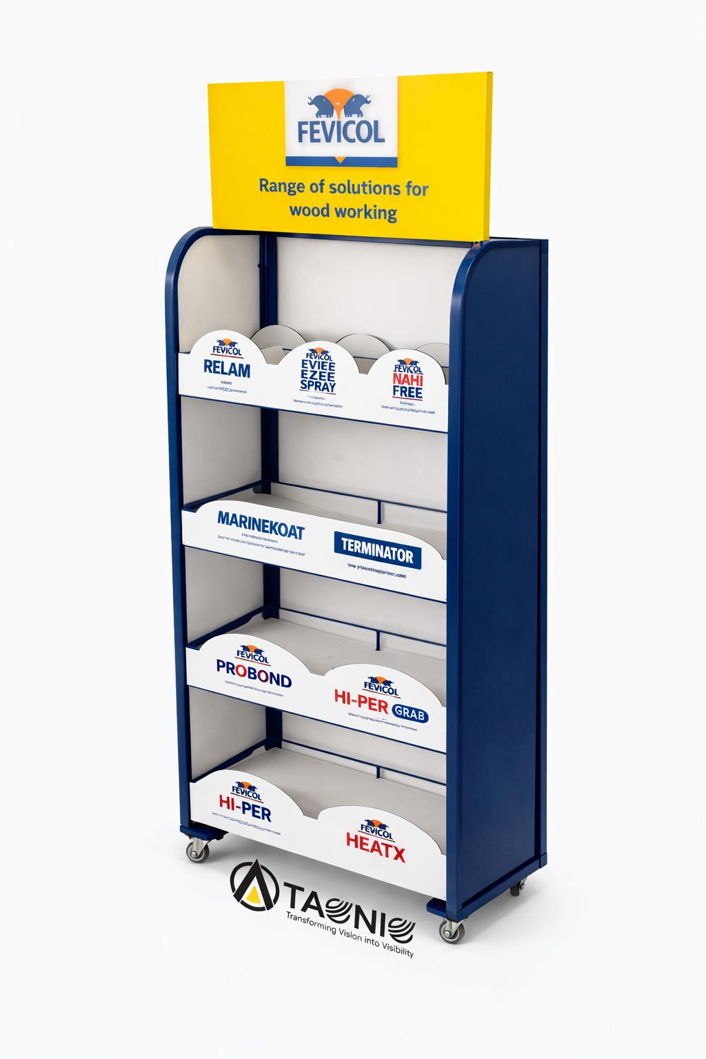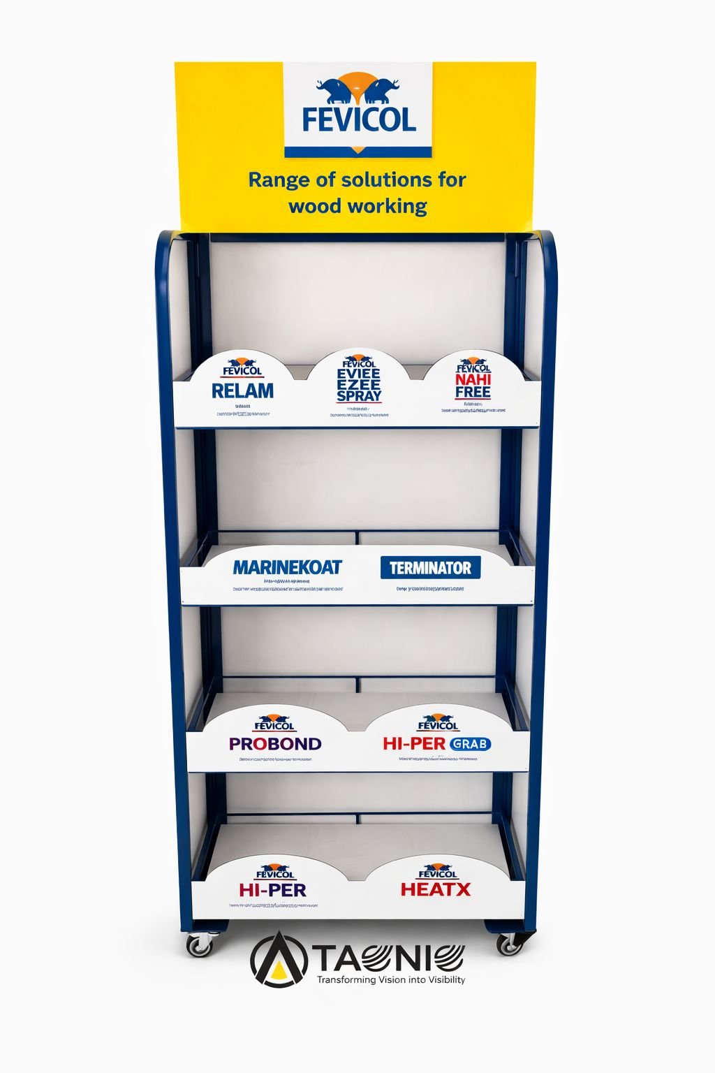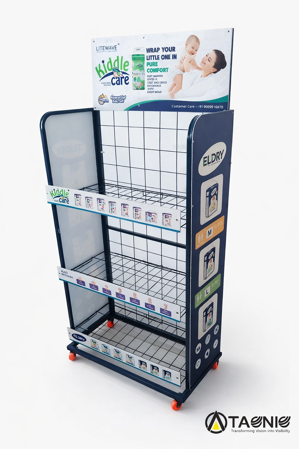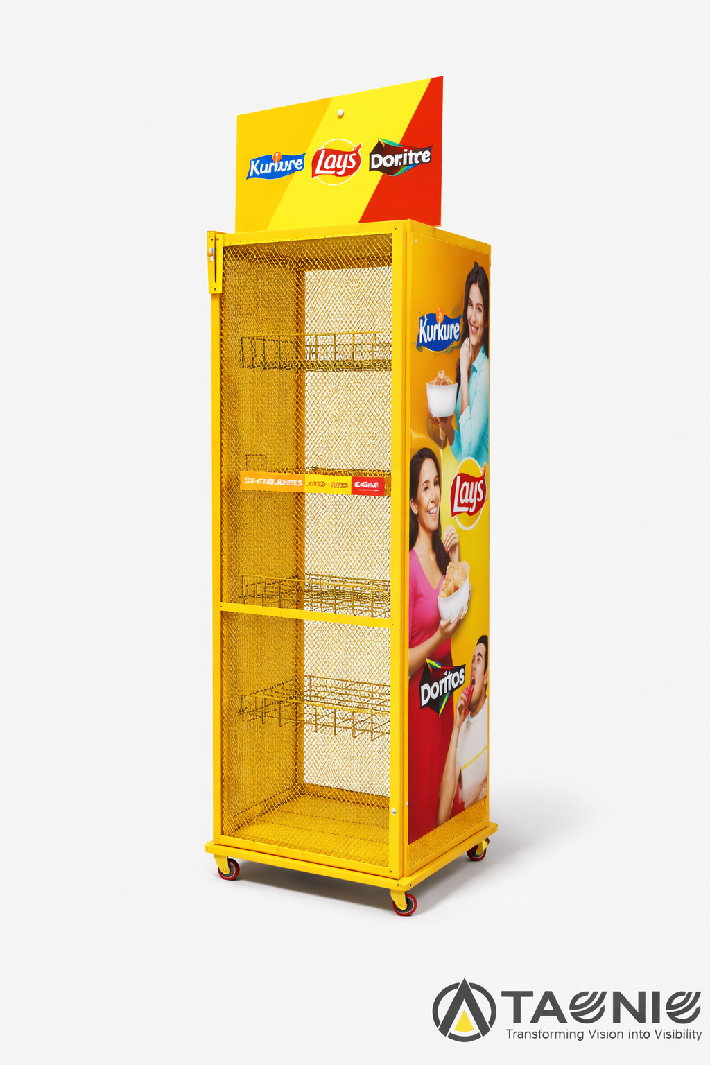 Designed to optimize space and improve product visibility, Taqniq metal racks can be fully customized to match your load requirements, store layout, and branding needs.